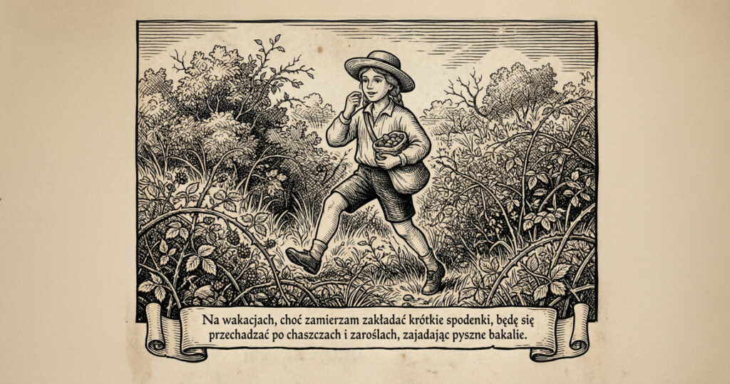 „Na wakacjach, choć zamierzam zakładać krótkie spodenki, będę się przechadzać po chaszczach i zaroślach, zajadając pyszne bakalie” – napisała w swoim zeszycie Mariolka. A róbta, co chceta, chciałoby się rzec. I w jej planach nie byłoby nic zaskakującego, gdyby nie zawierały jednego haczyka. Jaki to haczyk? Ha! Językowy. Wszystkie rzeczowniki ze zdania Mariolki występują w polszczyźnie tylko w liczbie mnogiej. Czy to wyłapaliście? Jeśli tak, to wielkie brawa, ale nagrody tym razem nie przewidziano. Co do samego […]