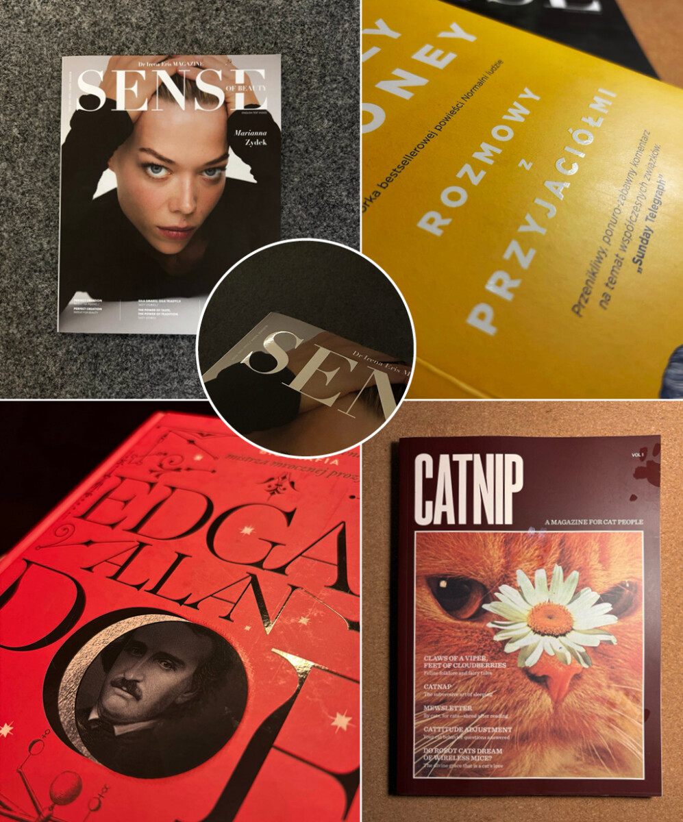 Najlepszy efekt można uzyskać poprzez zastosowanie lakierowania wybiórczego na wybranych elementach, takich jak logo czy tekst, na papierze matowym i dodatkowo pokrytym matową folią. Wyróżnione w ten sposób obszary mogą uzyskać błyszczące, matowe lub wypukłe wykończenie, co tworzy atrakcyjny efekt wizualny i dotykowy. Lakier wybiórczy to sposób uszlachetnienia okładki, teczki ofertowej, wizytówki czy kalendarza. Nie stosujemy lakieru na bardzo małych elementach i zbyt drobnym tekście, ponieważ uniemożliwiają one dopasowanie powierzchni lakieru do danego kształtu.