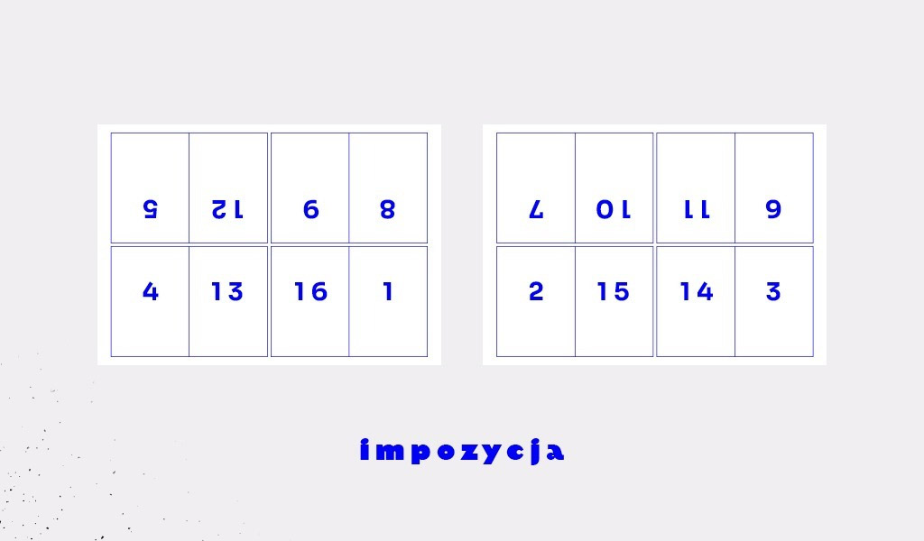 Jest impozycja, czyli proces składania poszczególnych stron, np. magazynów, na arkuszach, tak, by po ich wydruku, przycięciu i złożeniu uzyskać odpowiednią kolejność.