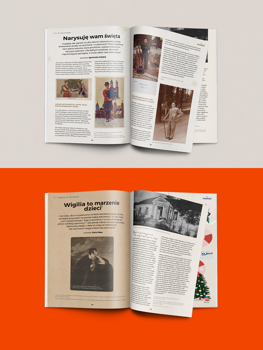 Czy wiecie, co na wigilię jadał Jan III Sobieski? A jak wyglądały ostatnie święta Bożego Narodzenia Adama Mickiewicza? A może jesteście ciekawi, w jaki sposób mieszkańcy Warszawy szykowali się do świąt w XIX i na początku XX w.? Zebraliśmy też pomysły na nietuzinkowe prezenty, propozycje świątecznych książek dla dzieci oraz wystaw w muzeach narodowych (i innych), które warto zobaczyć w najbliższym czasie. A dla tych, którzy w trakcie świątecznego lenistwa poczują zew przygody, opisaliśmy kilka miast – można się do nich wybrać (pociągiem – rzecz jasna), by zaspokoić ciekawość podróżnika.