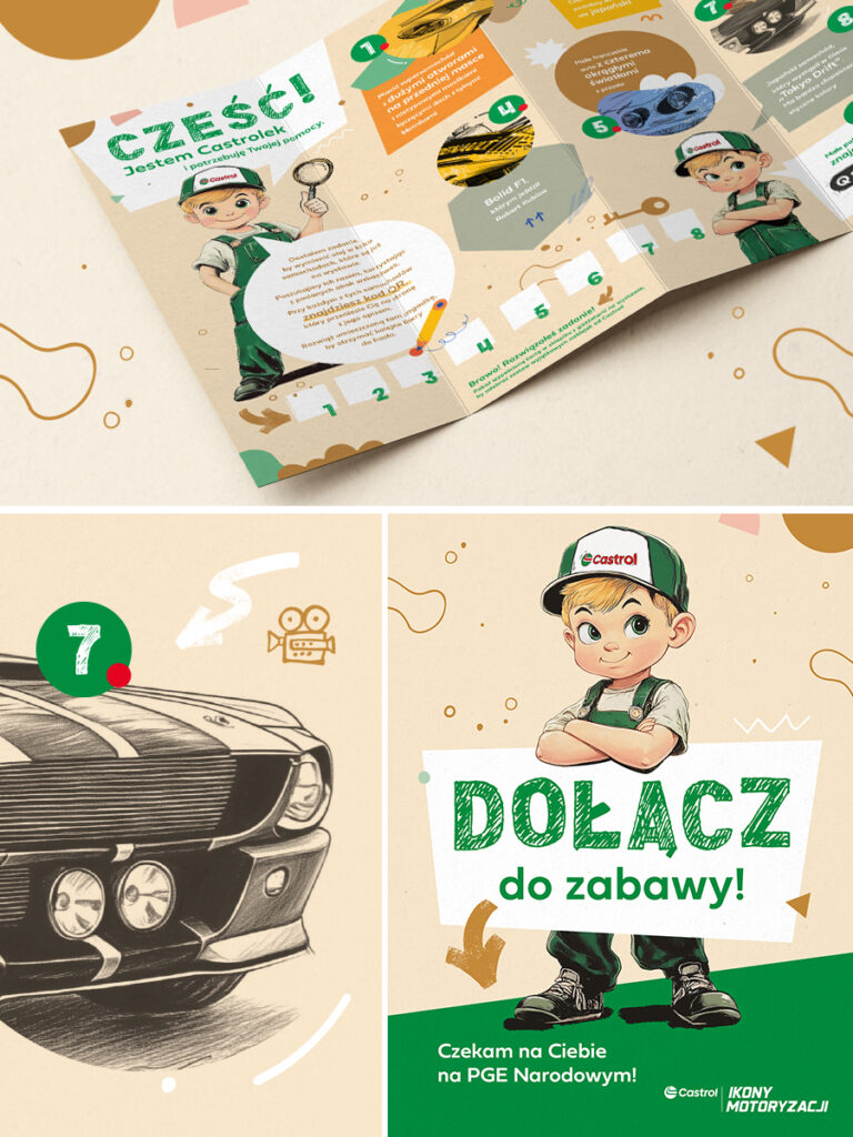 Ma charakterystyczny zielony kombinezon i czapkę z daszkiem, zielone oczy i łobuzerski uśmiech – Castrolek jest przewodnikiem dla uczestników gry terenowej rozgrywanej na terenie wystawy Castrol Ikony Motoryzacji. Sympatyczny, rysunkowy chłopiec zaprasza dzieci do zabawy, przy okazji przybliżając im historię motoryzacji i marki Castrol. Postać Castrolka narysowaną w komiksowym stylu przez nasze graficzki – Katarzynę Kwiatkowską i Katarzynę Krawczyk – można oglądać od 17 stycznia do 26 lutego na PGE Narodowym. Zapraszamy!